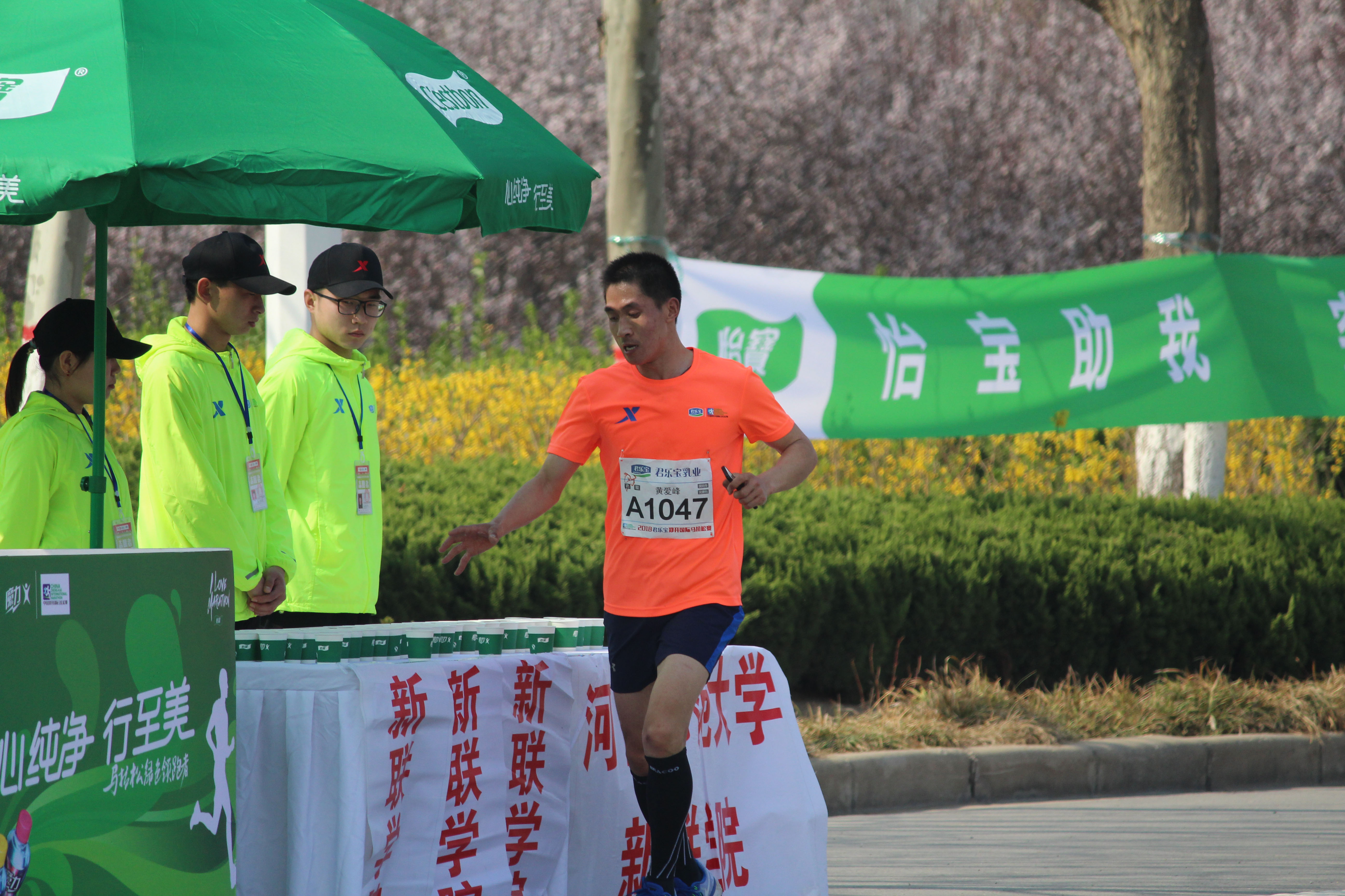 比赛当日凌晨四点,我校志愿者就已全部出发赶往赛道,在郑开马拉松组委会的统一安排下分配有序、各司其职,6:00左右已将饮水站和饮料站所有的所需物资整理完毕。上午6:00到下午14:00,我校志愿者以热情饱满的精神状态和认真负责的服务态度,配合公安机关认真做好道路秩序维持工作,用礼貌的言语和真诚的笑容劝解各种不文明观赛行为;在沿途水站,志愿者们为运动员送上矿泉水、营养饮料,缓解选手的缺水情况,还不时为选手们呐喊助威。志愿者们“高质量、高水平、高效率”的服务获得社会各界一致好评。