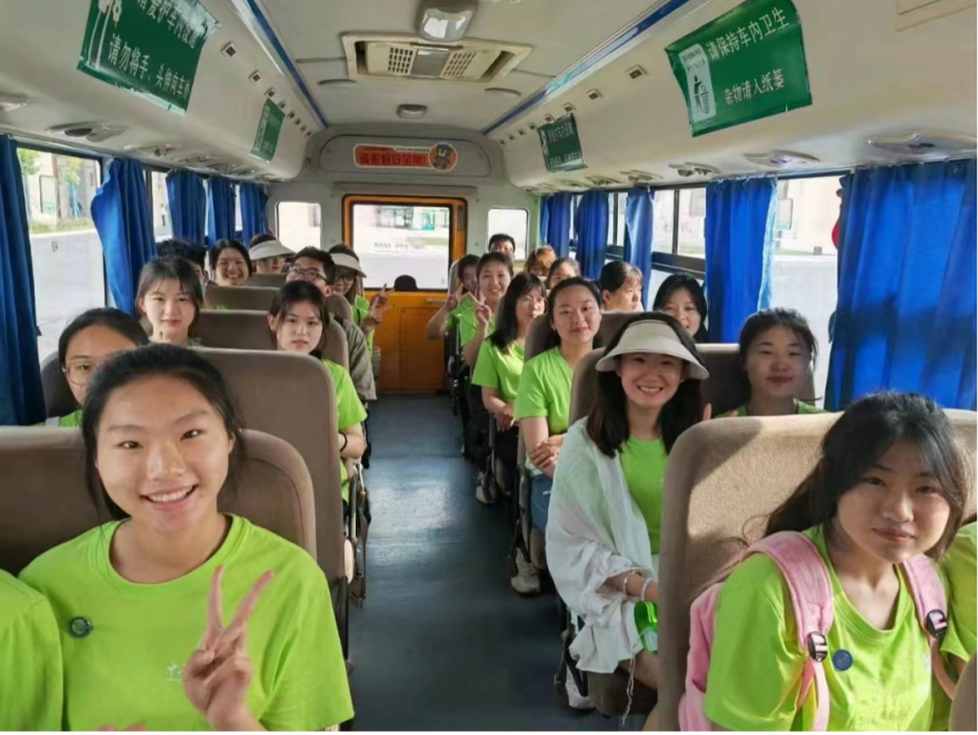 (教育学院同学们乘大巴出发)