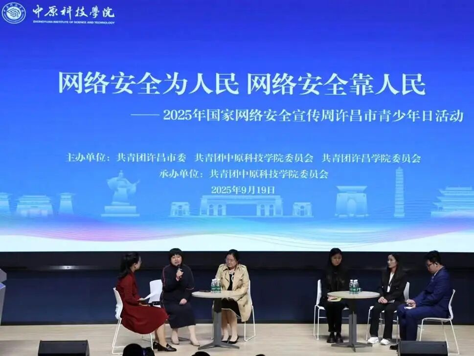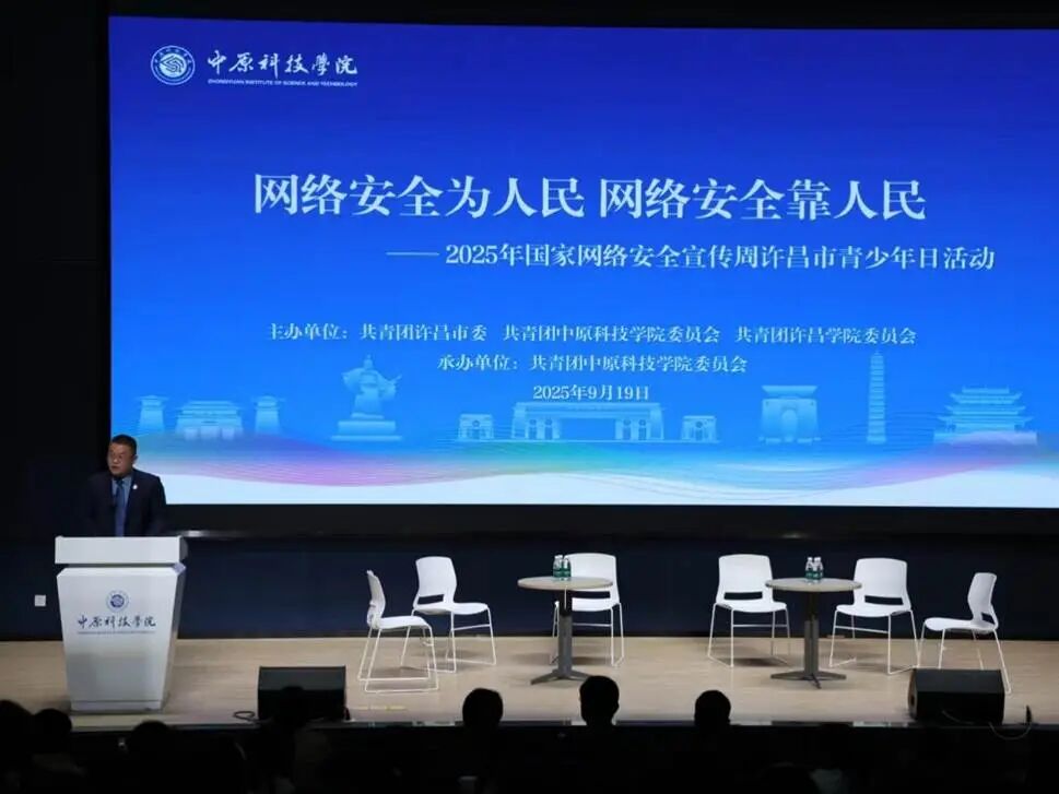 2025年9月19日下午,学校在自强报告厅隆重举行“2025年国家网络安全宣传周许昌市青少年日”活动。本次活动由团市委联合中原科技学院团委、许昌学院团委举办,旨在进一步增强广大学生的网络安全意识,引导青年学子争做文明、理性、负责任的网络使用者。