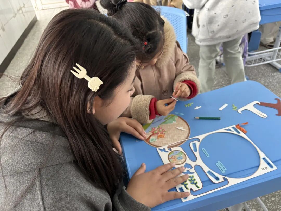 与此一墙之隔的教室,手工工艺协会带来“古诗贴画”。落日余晖里,孩子们把“白日依山尽”剪成层叠的群山,把“黄河入海流”揉成金粉的波浪,一张张贴纸,成为再一次相遇的暗号。我们不再是初遇,而是我等你许久。