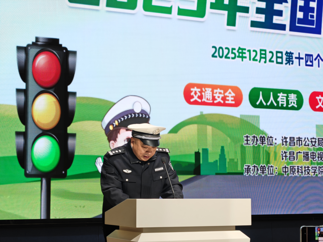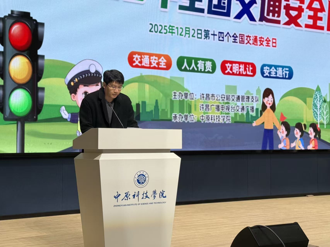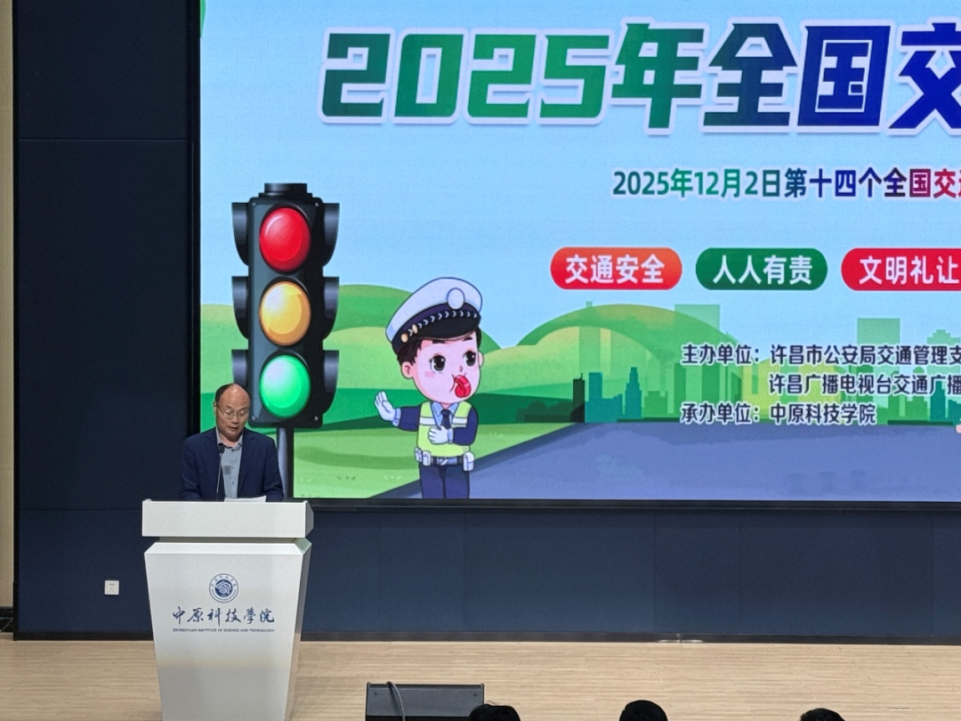 文明交通护民生,礼行天下暖许都。2025年12月2日,许昌市第十四个122“全国交通安全日”启动仪式在我校自强报告厅成功举行,本次活动以“文明交通,礼行天下”为主题,由市公安局交通管理支队、市广播电视台主办,中原科技学院协办,市有关部门负责人、许昌市运输企业代表、滴滴代驾代表、保险公司代表,美团外卖代表及师生代表齐聚现场,共话交通安全。