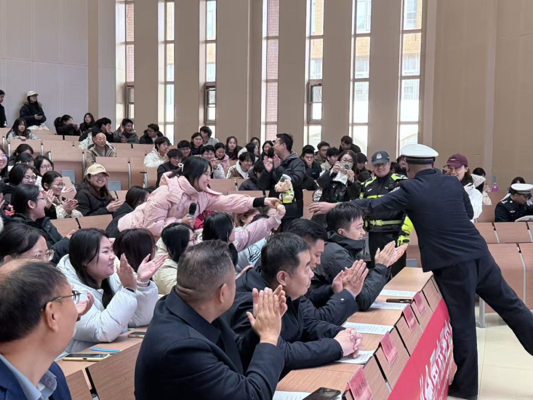 接着,由我校后勤管理处处长许朝峰老师上台发言,他表示,学校高度重视学生及教职工的交通安全意识培育,始终将交通安全教育作为校园安全工作的重要组成部分,通过丰富教育形式、创新教育内容,引导师生养成自觉遵守交通规则的良好习惯,全力营造“人人守法规、知礼让、讲文明”的校园交通氛围。