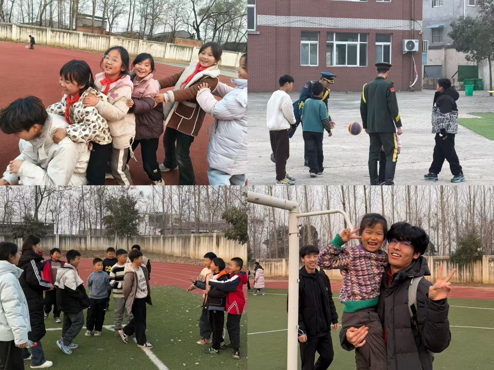 活动间隙,孩子们围在志愿者身边,分享着校园里的趣事,志愿者们也耐心倾听,用温柔的话语回应着每一份童真。从物资传递时的贴心照料到游戏场上的并肩欢笑,短短半天的时光,两校师生早已结下深厚情谊。校团委老师的悉心统筹、社团同学们的热忱陪伴、蒋店小学老师们的全力配合,点点滴滴的付出,都化作冬日里最暖的光,照亮了这场跨越校园的美好相遇。