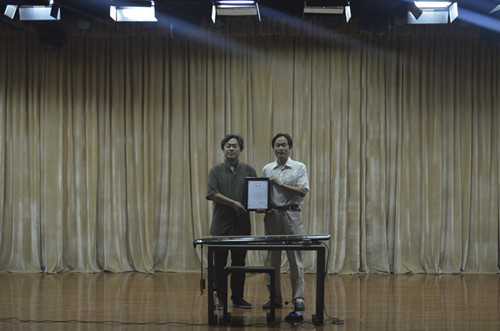 讲座在我校副院长陈江风的致辞中拉开序幕,他说道“李先生走的是一条既守传统,又开阔未来的生生不息的好路”。伴随着热烈的掌声,李一凡先生走上了舞台,做了简单的自我介绍,并接过了陈校长颁发特聘教授证书。讲座开始后,李一凡先生在古琴边侃侃而谈,向现场观众简要介绍了古琴的历史由来之后,便高弹一曲《高山流水》,现场观众屏息凝神,被优美动听的旋律深深地触动,观众呼吸的频率随着音律的快慢而变化,音乐声止,现场响起了热烈的掌声。李先生向同学们普及了许多关于古琴的知识,并详细讲述了古琴的发展史,并且通过讲述电视剧电影里的曲子牢牢吸引了全场同学的注意力。不仅如此,还详细介绍了古琴的结构,让我们通过古琴感受到文人的情怀,通过音乐与古人进行交流,与此同时,他也为同学们讲了广陵绝响的故事,让同学们对《广陵散》这首曲子有了更深刻的了解;紧接着,低吟的梅花三弄的故事让同学们对这首曲子有了一定的了解,同学们带着深思聆听《梅花三弄》。最后伴随着《阳关三叠》的优美旋律,在高雅的文化氛围中,此次活动圆满结束。