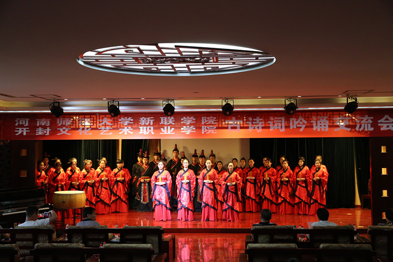 2017年5月24日,由开封文化艺术职业学院主办,河南师范大学新联学院协办的古诗词交流会在开封文化艺术职业学院举行。南开大学中华古典文化研究所兼职研究员,非物质文化遗产--华调吟诵传承人,中华吟诵协会副理事长,教育部聘"中华经典资源库"吟诵专家,河南省吟诵学会会长华锋,河南师范大学新联学院副院长、中国古代文学、民俗学硕士导师陈江风、河南师范大学新联学院团委老师周云剑出席此次古诗词交流会。
