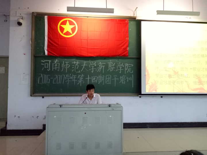 2017年6月8日,河南师范大学新联学院2016-2017学年第十四期团干培训大会在文质楼213教室召开。此次团干培训主讲人由土建学院团委书记李晨阳老师担任,各学院团支部干事,各班团支书、宣传委员、组织委员参与此次培训大会。