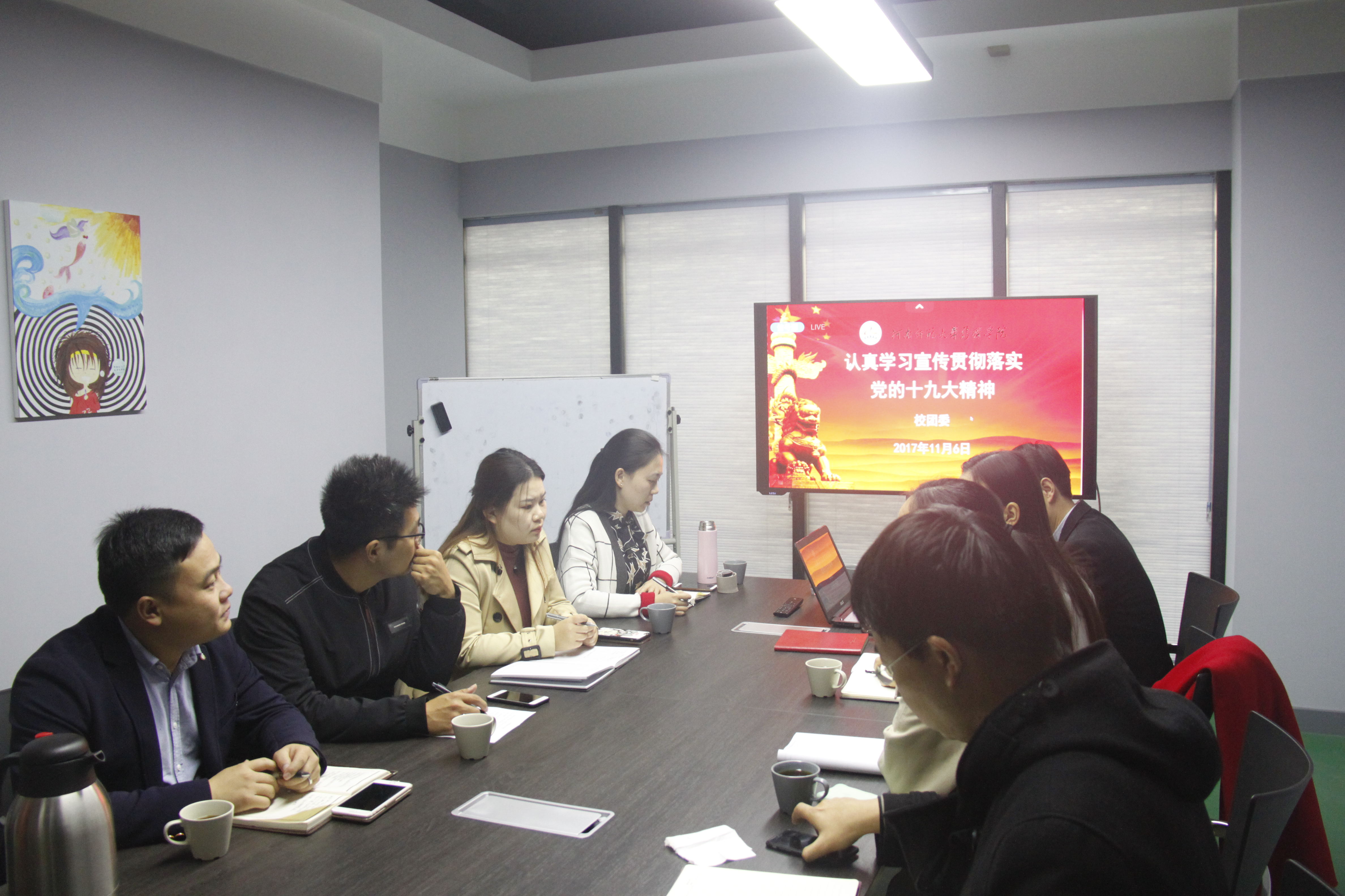 2017年11月6日中午,我校在众创空间二楼会议室召开全体团委书记学习十九大精神专题培训会,党政办主任兼校团委书记茹佳佳及各学院团委书记出席本次会议。