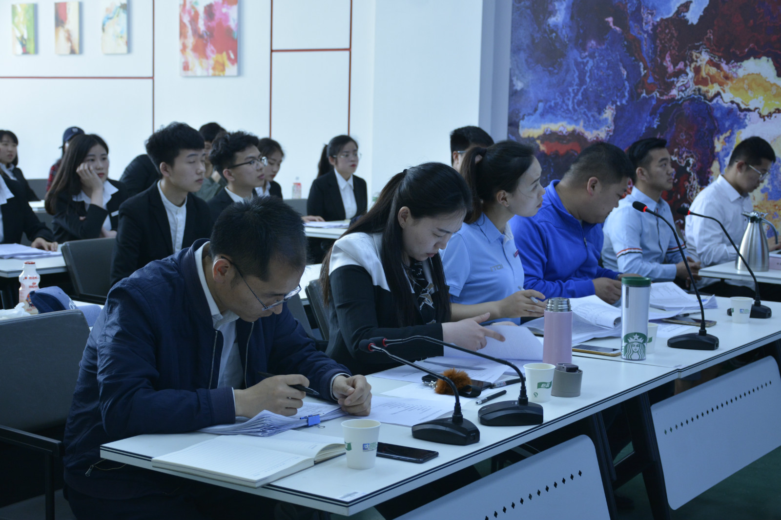 此次比赛采用路演的形式,由各个项目负责人讲解本团队的创业项目PPT,共有义杰校园服务平台、灵悦画吧、知你APP、益力特早教服务中心、易联校园、光影新联、“秘境”DIY手工制造、TID新型英语培训、叮咚分销商城、新艺联服装租赁、“互联网时代背景下”的创始人等28个参赛队伍。路演时由各个项目负责人讲解本团队的创业项目PPT,其中“灵悦画吧”项目想法新颖独特,可吸引具有绘画天赋及兴趣的人来此放松休闲;知你APP作为一款心理咨询类型的软件,非常符合现代青年的心理需求,在解决心理问题的同时还可以为高校提供就业岗位;益力特早教服务中心意在通过特色课程锻炼婴幼儿的智力以及感官情感的认知、行动能力,在社会思想程度发达的现阶段可得到有效发展;光影新联已在河师大新联学院注册并成立工作室,为同学服务的同时,拥有着齐全的设备、丰厚的资源以及良好的业务承接能力。28支参赛团队经过精彩的项目陈述和激烈的问答,充分展示了各自创业项目的特色。各参赛团队分别从项目背景分析,项目的开发与意义,市场及竞争分析,营销策略,盈利模式,经济及财务状况,融资方案和回报,经营管理和运作方案,风险管理等方面进行进行团队创业项目和运营思路展示。每个项目展示完成后,评委老师根据各团队创业计划书的可行性,资金的分配,竞争优势,公司战略等方面进行提问,由团队成员进行精彩的解答。此次大赛的各项目具有合法性、自主创作性、创新性及可操作性,良好地展现了我校大学生丰富的想象力和源源不断的创造力。
