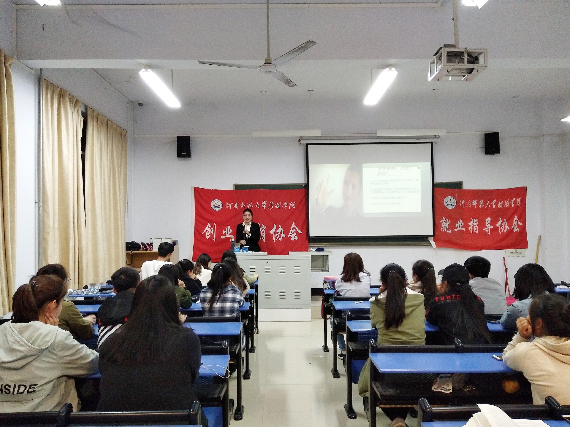 为使当代大学生能更加清楚地了解当今创业及就业形势,增加本社社员对创业就业的理解,我校创业社和就业社于2018年4月25日下午19时举办社团文化节第三周座谈会。