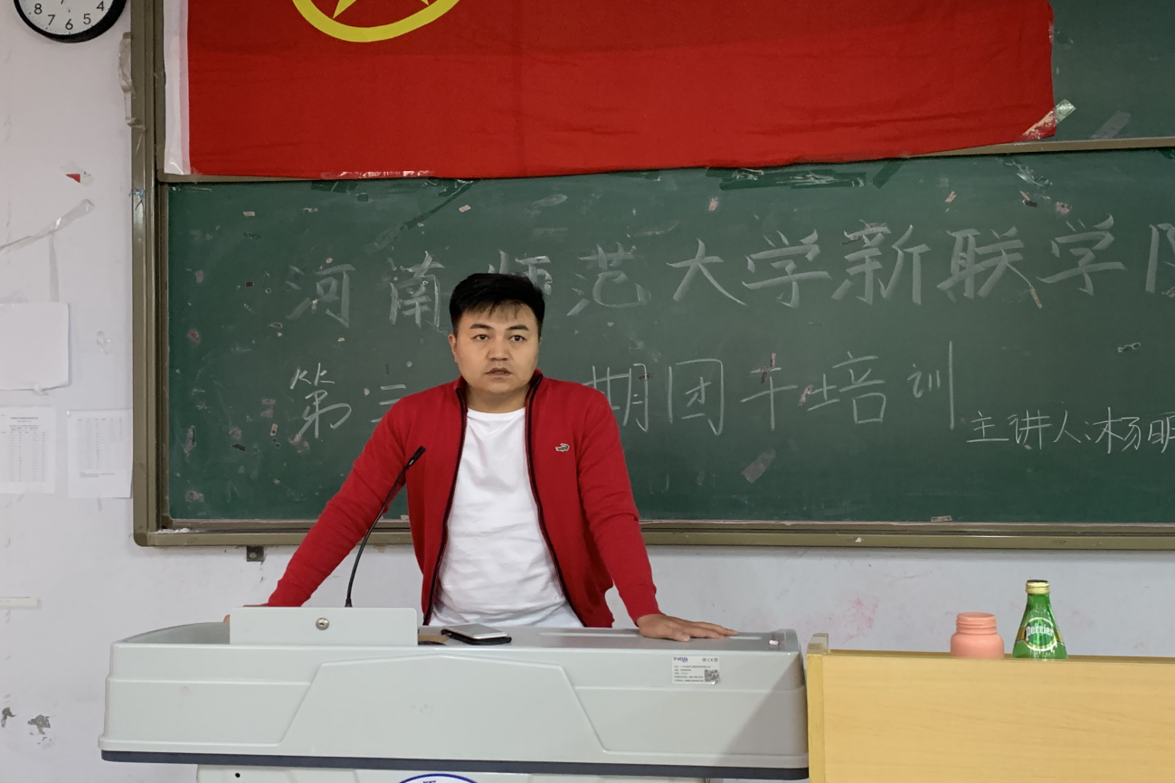 2019年10月25日,河南师范大学新联学院于文质楼213教室召开了以“不忘初心,牢记使命”为主题的第三十一届团干培训大会,本次团干培训大会的主讲人由文学与传媒学院杨明辉老师担任。