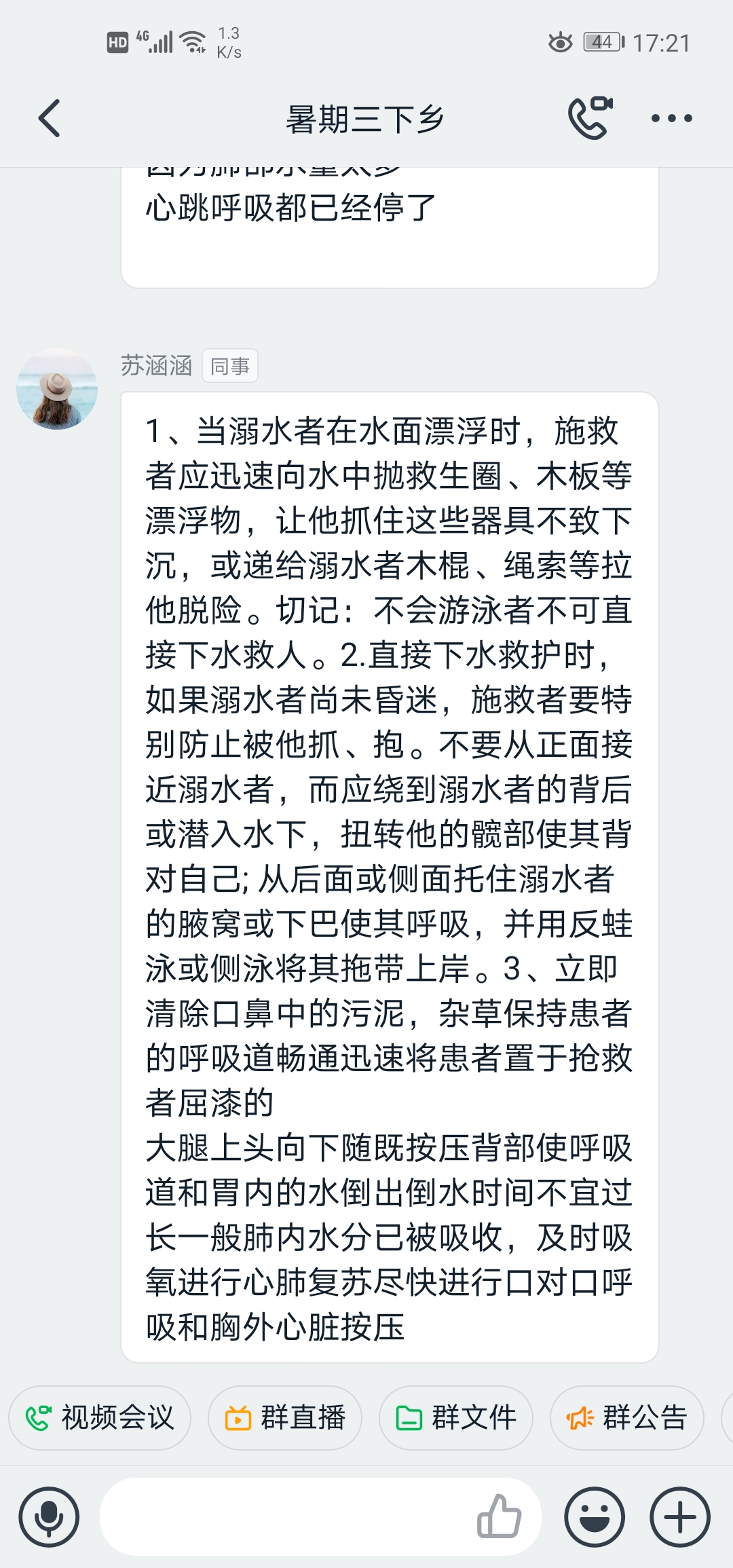 7月31日,“珍爱生命 预防溺水”的主题线上宣讲活动第三场如期而至。此次宣讲主要内容为溺水后现场急救相关知识的讲解与分析,采用播放视频的形式,用真实的溺水事例向大家强调溺水后现场急救的重要性。这些视频内容也引起了大家的高度关注,也纷纷发表感受相互分享,相互学习。