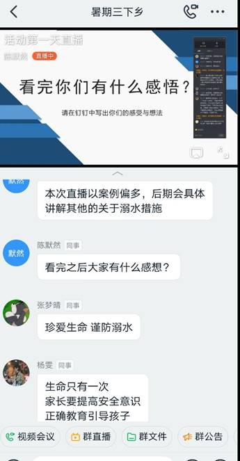 为切实提高学生们的防溺水意识,减少溺水事故的发生,掌握溺水后的自救方法。7月29至31日,我校教育学院暑期“三下乡”团队在钉钉开展为期3天的“珍爱生命 预防溺水”的主题线上宣讲活动。