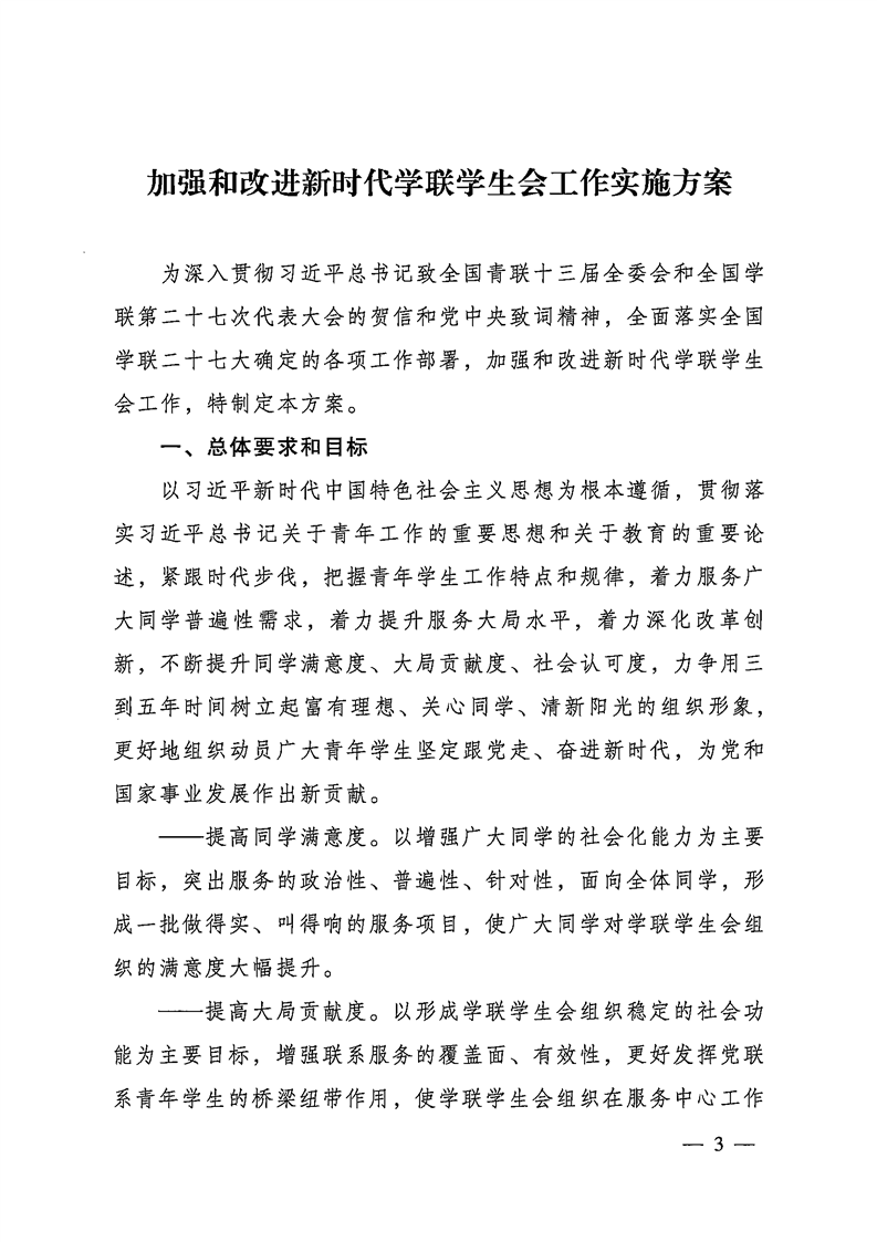 共青团中央办公厅 全国学联秘书处关于印发《加强和改进新时代学联学生会工作实施方案》的通知