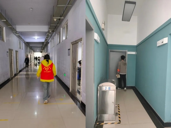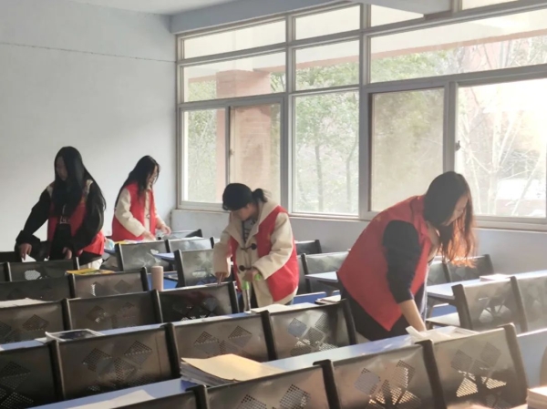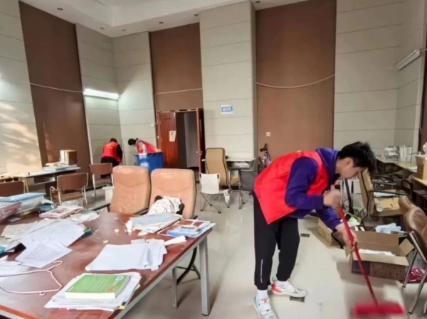 ▲志愿者在自习室打扫卫生