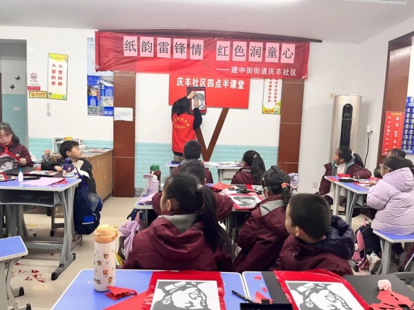 3月5日,教育学院团总支联合青年志愿者协会前往二七区庆丰街办事处,为四点半留节儿童开展“纸韵雷锋情 红色润童心”手工剪纸活动,让雷锋精神根植于孩子的心中。活动中,孩子们纷纷拿出剪刀和彩纸,创作剪纸作品,他们或刻或剪,或涂或绘,将雷锋的形象、事迹融入自己的作品中,每一幅作品都充满了创意和想象力,展示了对雷锋精神的理解和感悟。