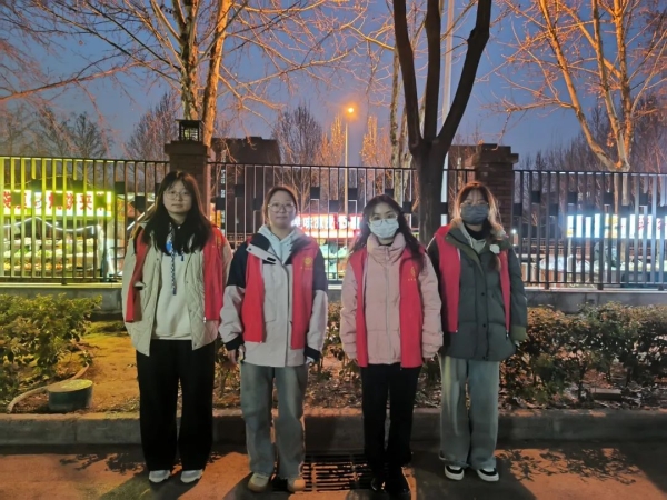 ▲志愿者在校园内进行文明督导
