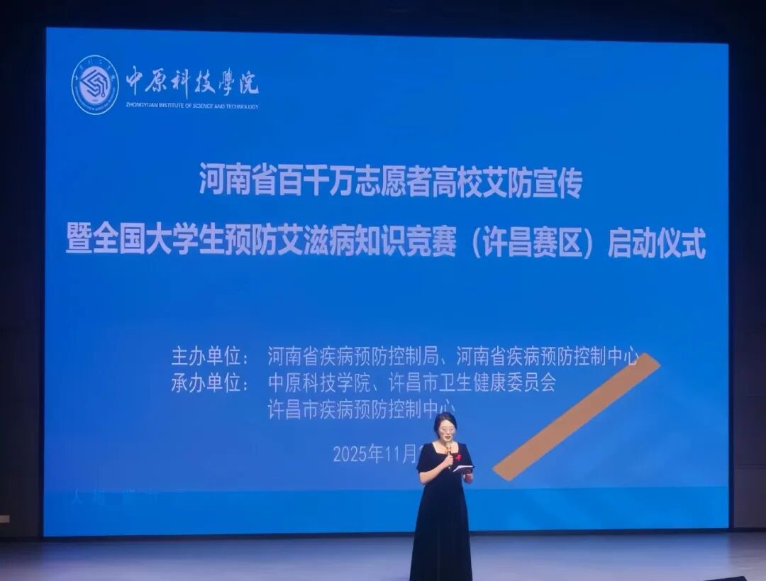 2025年11月27日,在第38个“世界艾滋病日”来临之际,“河南省百千万志愿者高校艾防宣讲暨全国大学生预防艾滋病知识竞赛”(许昌赛区)启动仪式在我校温情启幕。本次活动由河南省疾病预防控制局、河南省疾病预防控制中心主办,许昌市卫生健康委员会、许昌市疾病预防控制中心、中原科技学院共同承办,为参会师生及多方领导代表呈现了一场兼具专业性与感染力的防艾宣传盛会。