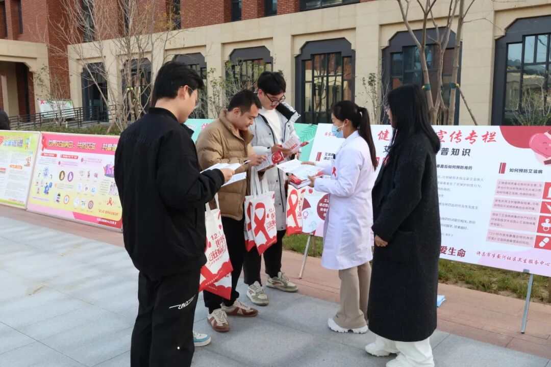活动现场,多方力量携手助力。河南省疾控中心、许昌市卫健委、共青团许昌市委、许昌市疾控中心、中原科技学院等单位领导及许昌各高校团委、师生志愿者齐聚一堂,魏都区、建安区等多地疾控机构及医疗卫生单位也积极参与支持。入口处的宣传展区内,图文并茂的展板直观呈现防艾知识,咨询台的工作人员耐心解答疑问,义诊台为师生免费提供血压、血糖检测服务,红丝带主题贴纸传递着关爱与温暖,全方位营造出浓厚的防艾氛围。
