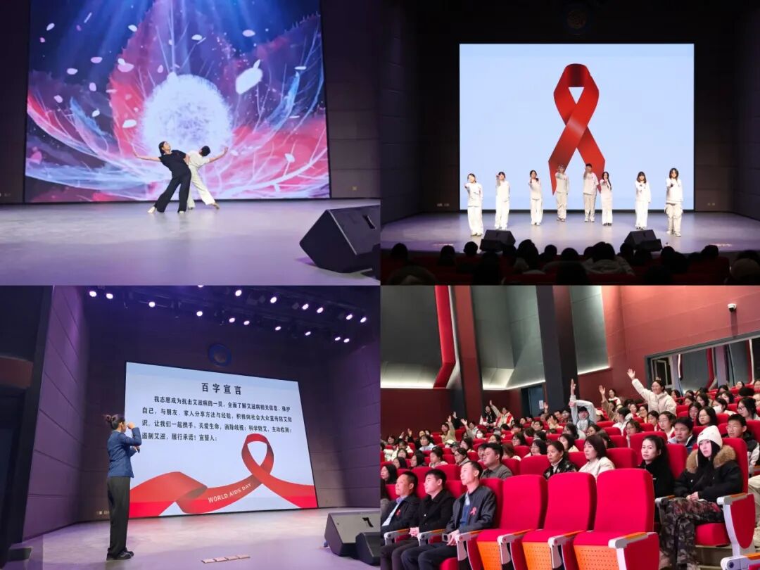 文艺展演与互动环节点燃全场热情。中科学子们献上歌舞表演,用旋律传递生命希望,以肢体语言诠释防艾初心,引发情感共鸣。有奖竞答环节中,防艾知识题激发全场参与热情,同学们在问答互动中巩固知识点;集体宣誓环节,全体人员起立举拳,庄严宣读《百字宣言》,铿锵誓言彰显共同抗艾的坚定决心。