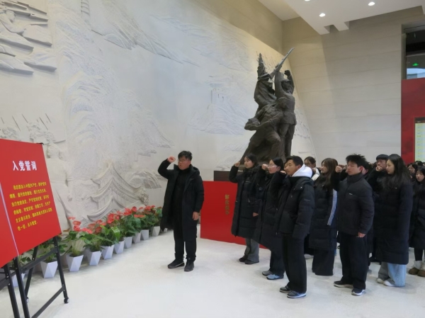 献花仪式结束后,同学们在工作人员的引导下移步室内,进入烈士纪念馆。在馆内革命先烈事迹展区前,全体同学庄严列队、举起右拳宣誓,誓言铿锵有力,彰显新时代青年铭记历史、缅怀先烈、勇担使命、守护和平的坚定信念。宣誓完毕,同学们认真参观烈士纪念馆,馆内珍贵的文物、详实的史料、生动的图片,全方位展现了革命先烈在艰苦卓绝的斗争中坚守信念、奋勇拼搏的崇高精神。大家认真聆听工作人员讲解,不时驻足凝视,深入探寻先烈足迹,深刻感悟革命先辈为国家和人民不惜牺牲一切的家国情怀。
